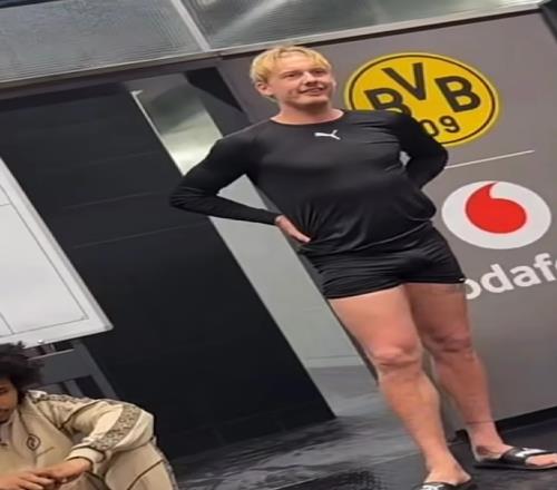 體育播報(bào)03月23日宣 多特讓二追三3-2逆轉(zhuǎn)漢堡賽后,布蘭特僅身著內(nèi)褲向全隊(duì)發(fā)表了演講。本場(chǎng)比賽,布蘭特完成了自己代表多特出場(chǎng)的300場(chǎng)里程碑。
