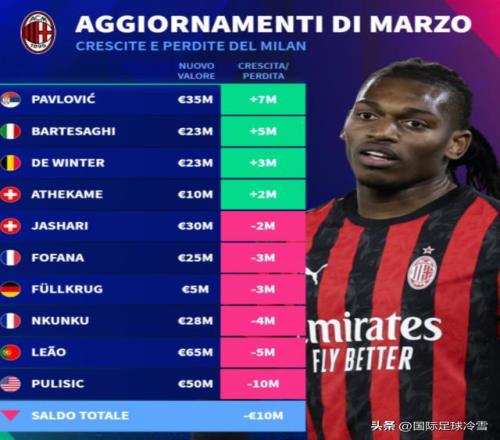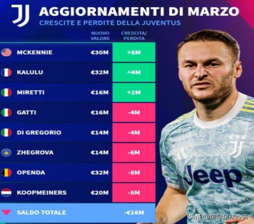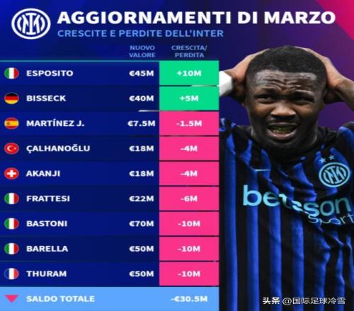 國米的身價下滑總值,比尤文圖斯(下滑1600萬)和AC米蘭(下滑1000萬)都高出很多,這引發(fā)了熱議。