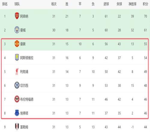 本賽季,由于英超在歐戰(zhàn)積分優(yōu)勢明顯,他們大概率能再次獲得5個歐冠名額,因此只要聯(lián)賽排名前五,下賽季都能參加歐冠。從目前來看,曼聯(lián)、維拉、利物浦、切爾西、布倫特福德和埃弗頓這6支球隊,將競爭前五剩下的3個名額。
