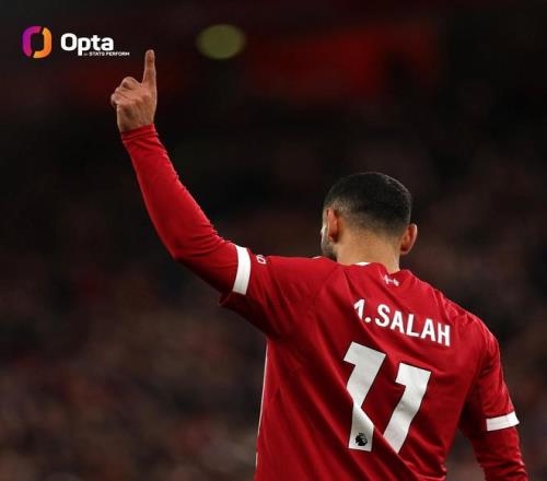 自2017-18賽季以來(lái),薩拉赫在英超排名第一的數(shù)據(jù)包括: