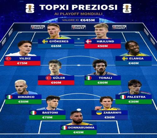 北京時間3月26日,德轉(zhuǎn)列出了即將參加世預(yù)賽附加賽的身價最貴11人名單,居萊爾、托納利、伊爾迪茲領(lǐng)銜。
