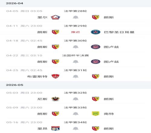 盡管法國(guó)職業(yè)足球聯(lián)盟提議若巴黎晉級(jí)歐冠半決賽,朗斯可以將對(duì)陣南特的比賽提前一天,但也將導(dǎo)致朗斯最后三輪9天3賽。