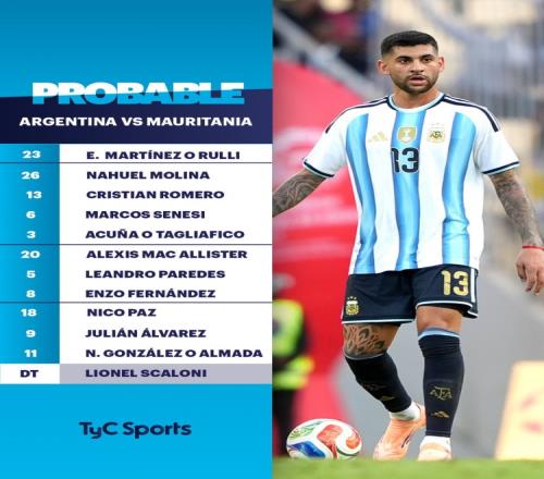 TYC預測阿根廷友誼賽首發(fā):小蜘蛛、帕斯、恩佐、塞內(nèi)西在列 X 2026-03-27 16:40:11 體育播報3月27日宣 北京時間明天7點15分,阿根廷將在友誼賽中對陣毛里塔尼亞,TYC預測了阿根廷隊的首發(fā)陣容。TYC預測阿根廷隊首發(fā)陣容門將:大馬丁(魯利)后衛(wèi):莫利納、羅梅羅、塞內(nèi)西、阿庫尼亞(塔利亞菲科)中場:麥卡利斯特、帕雷德斯(朱利亞諾·西蒙尼)、恩佐前鋒:尼科·帕斯、阿爾瓦雷斯、岡薩雷斯(阿爾馬達)足球免費觀看_阿根廷免費觀看_英超免費觀看_足球高清在線_阿根廷高清在線_英超高清在線 足球 阿根廷 英超 切爾西 馬德里競技 西甲 意甲 科莫 伯恩茅斯 上一篇: 上演法國隊首秀!拉克魯瓦:我會腳踏實地努力入選世界杯名單 下一篇: 前埃弗頓CEO:我認為熱刺很有可能請戴奇來保級