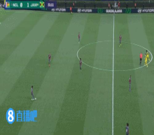 第35分鐘,喬治費(fèi)納比前場搶斷牙買加中后衛(wèi),身前一馬平川,他選擇了中圈附近直接吊門!皮球被門將得到↓