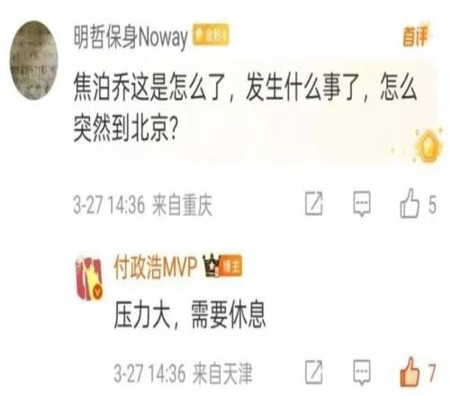廣東男籃最近的表現(xiàn)比較一般,球隊的壓力也比較大。據(jù)國內(nèi)媒體直播吧透露,焦泊喬以處理私人事務(wù)的理由向球隊提出暫時離隊,球隊非常理解并支持,歸期未知。隨后媒體人付政浩也報道了這個消息,有廣東球迷向他詢問了焦泊喬離隊的具體原因,付政浩表示焦泊喬目前在北京,他是因為“壓力大,需要休息”而申請的離隊。對此不少廣東球迷直言,焦泊喬其實就是心理方面出現(xiàn)了問題,簡單說就是抑郁了。