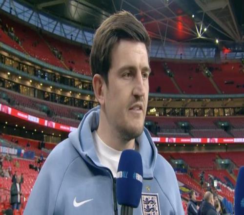 在對陣烏拉圭的比賽前,英格蘭后衛(wèi)馬奎爾在溫布利球場接受了ITV體育的采訪。
