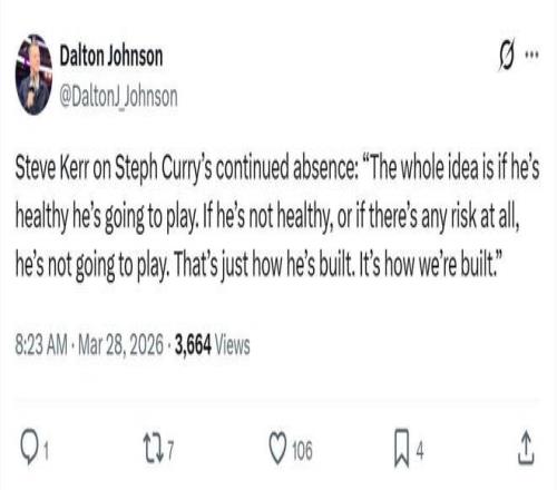 同時再度明確庫里復(fù)出的原則,如果他徹底恢復(fù)健康,他就會登場,否則就不會,哪怕有一絲風(fēng)險也不會貿(mào)然讓其登場,這就是球隊的原則。