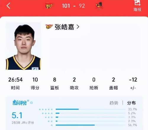 真正令人眼前一亮的是張皓嘉。在末節(jié)對(duì)手反撲、主力輪休之際,他挺身而出,貢獻(xiàn)10分、8籃板、2搶斷、2蓋帽,攻防一體的表現(xiàn)堪稱本場(chǎng)最佳替補(bǔ)。其積極的拼搶、精準(zhǔn)的補(bǔ)防與關(guān)鍵時(shí)刻的得分,不僅穩(wěn)定軍心,更展現(xiàn)出成長為球隊(duì)重要輪換的潛力。