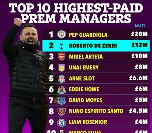 據(jù)英國媒體披露,德澤爾比的年薪高達 1200萬英鎊。這一數(shù)字不僅刷新了熱刺隊史記錄,也直接“碾壓”了多位爭冠及爭四行列的主帥。