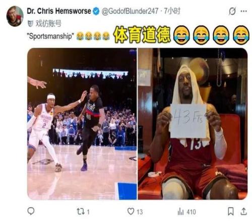 網(wǎng)友@三浦不美:莫布里面對老詹,頂一下,兩下,頂不動,球被切拉