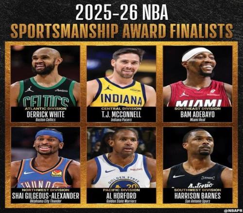 NBA官方宣布了本賽季體育道德風尚獎的6名最終候選人。現(xiàn)役NBA球員將從這6名候選人中投票選出最終的獲獎者,每名候選人分別代表NBA六大賽區(qū)。該獎項先由每支球隊提名一名球員,再由NBA高管從30個提名中選出6名最終候選人,最后由現(xiàn)役NBA球員從這6人中選出。