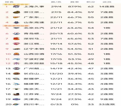 CBA最新積分榜