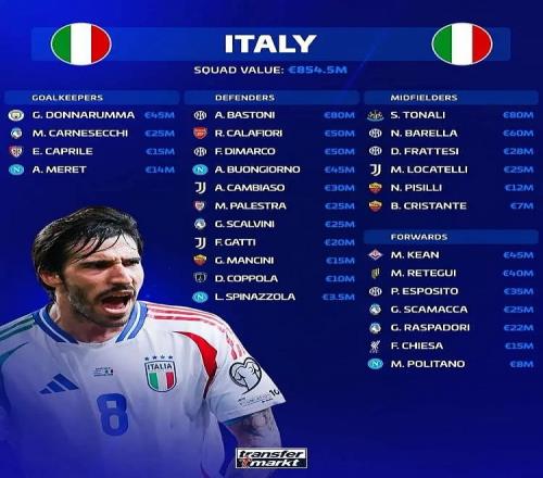意大利隊(duì)的身價(jià)超過(guò)了德國(guó)(7.74億歐元)、荷蘭(7.66億歐元)、比利時(shí)(5.24億歐元)和挪威(5.04億歐元),實(shí)戰(zhàn)成績(jī)之差令人咋舌。