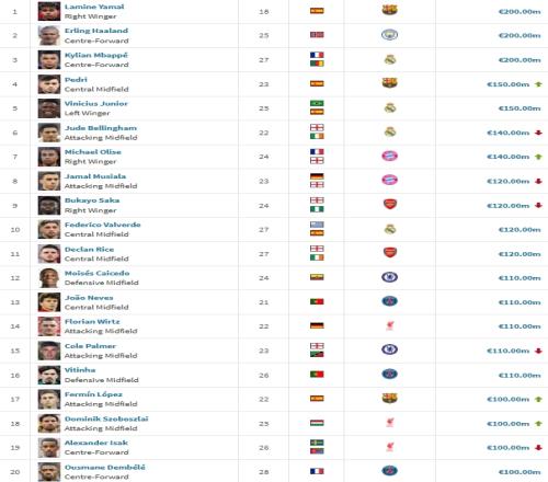 當(dāng)年《都靈體育報(bào)》創(chuàng)立金童獎(jiǎng),原本是為了激勵(lì)意大利本土球員,沒(méi)想到近15年來(lái)僅有1名意大利球員(巴洛特利)加冕。在2025年度候選名單中,意大利只有2人入圍(萊奧尼&皮奧·埃斯波西托),遠(yuǎn)低于法國(guó)和英格蘭(5人)。在德國(guó)轉(zhuǎn)會(huì)市場(chǎng)公布的最新球員身價(jià)榜中,億元先生多達(dá)20人,意大利竟無(wú)一人上榜。