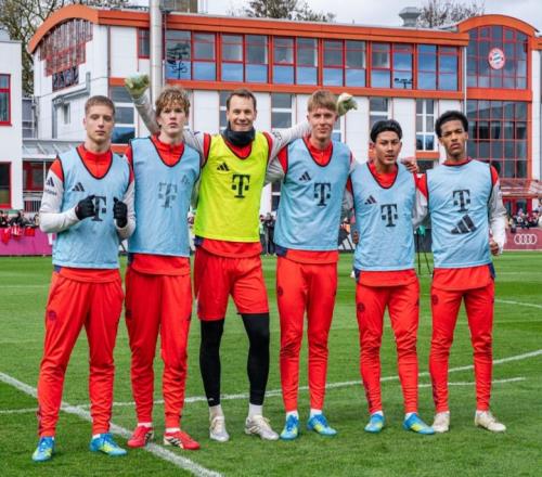 奧斯馬尼幾周來(lái)一直在孔帕尼訓(xùn)練麾下,其余四人則是本周一首次與一線隊(duì)合練,他們的表現(xiàn)都很出色。馮·陶伯在鋒線上取得進(jìn)球,施密德在諾伊爾隊(duì)的收官戰(zhàn)中也取得進(jìn)球,馬斯皮姆比表現(xiàn)出色,努拉伊和奧斯馬尼則在場(chǎng)上拼盡全力。