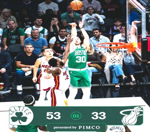 首節(jié)比賽,凱爾特人手感徹底炸裂,外線狂下三分雨!凱爾特人首節(jié)28投20中,命中率突破70%不說,3分更是15投11中,命中率同樣超70%,單節(jié)便以53-33贏了熱火20分,早早建立巨大優(yōu)勢。具體到球員方面,杰倫?布朗11投8中,命中2記3分,首節(jié)獨砍20分;豪瑟3分手感滾燙,6 投全中,3分5中5,轟下17分,打穿熱火外圍防線。值得一提的是,凱爾特人單節(jié)狂攬53分、命中11記3分,這一史詩級的表現(xiàn)也刷新了隊史自1970年以來、近56年的單節(jié)最高得分紀(jì)錄。