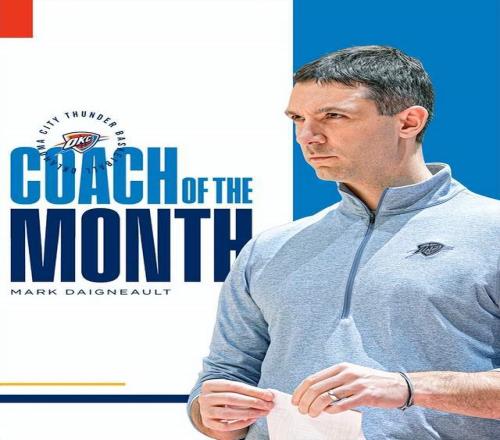 雷霆隊主帥馬克-戴格諾特當選西部3月最佳教練,老鷹隊主帥奎因-斯奈德則斬獲東部該項榮譽。