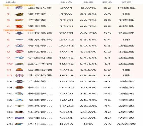北京時間4月2日,今晚的CBA常規(guī)賽第33輪結(jié)束了最后兩場比賽,我們看看最新積分榜的變動,主要的信息是:深圳109-94掀翻衛(wèi)冕冠軍廣廈,豪取8連勝;寧波89-86險勝南京,迎來兩連勝,暫列第9名。