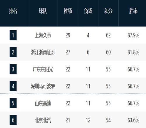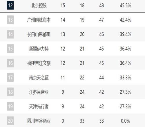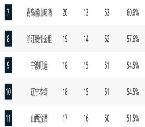 青島和浙江保持連勝,他們的排名沒有任何變化。而他們距離北京也不遠,估計后續(xù)會直指第六的位置。