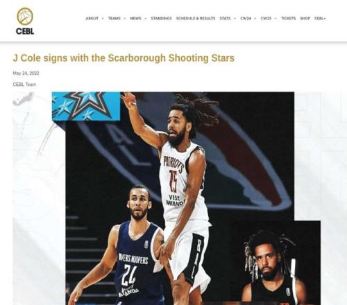 2022年J.Cole曾加入一家加拿大俱樂部,參加加拿大男子籃球職業(yè)聯(lián)賽。