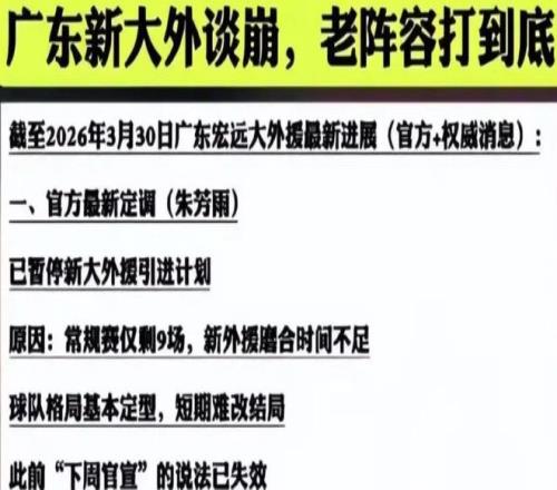 廣東男籃本賽季高開低走,雖然說目前還排在聯(lián)盟第三名的位置上面,但是整體的實力和狀態(tài)可以看出來是比較差的,對抗強隊的時候自身內(nèi)線的弱點就會被無限的放大,此前對陣上海和北京隊的比賽時就非常的明顯,此前朱芳雨一直都是說著廣東男籃將會迎來新的大外援,但是據(jù)相關(guān)媒體報道,廣東男籃的大外援被長三角地區(qū)的球隊截胡了,目前對于廣東隊來說沒有心儀的大外援人選,這也是非常糟糕的一件事,目前焦泊喬離隊,大外援也不到位,這對于廣東隊來說真的是雙重打擊,常規(guī)賽還有9輪大外援還沒敲定的話對于后續(xù)磨合難度非常大,所以大概率本賽季廣東隊不會有大外援的到來了!