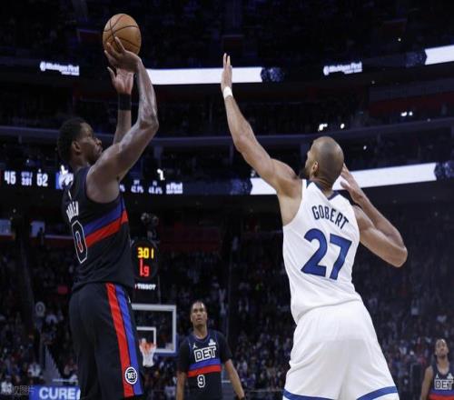 次節(jié)雙方進攻效率均出現(xiàn)下滑,單節(jié)得分均未突破25分?;钊氏却虺鲆徊?-0攻勢實現(xiàn)反超,森林狼則連得5分迅速追平。隨后蘭德爾與康利先后得分,森林狼逐步以45-41再度反超,活塞不甘示弱連得4分扳平比分,森林狼隨即轟出7-0攻勢拉開差距。關鍵時刻活塞打出9-2反擊,再度扳平比分,本節(jié)森林狼以23-24凈負1分,上半場結(jié)束,兩隊54-54戰(zhàn)平。