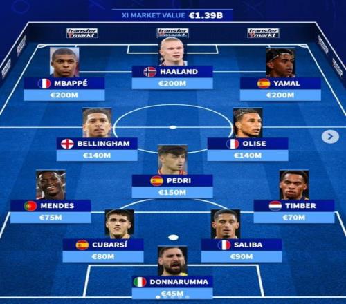 在世界杯即將來臨之際,德國轉(zhuǎn)會(huì)市場盤點(diǎn)歐洲最貴陣,姆巴佩、哈蘭德、亞馬爾三叉戟,佩德里、奧利塞在列。