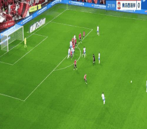 第21分鐘,青島西海岸打出戰(zhàn)術(shù)任意球,阿齊茲完全無(wú)人盯防,遠(yuǎn)距離頭球攻門,中衛(wèi)索羅金和劉殿座同時(shí)沖了過去,皮球稍稍偏出。