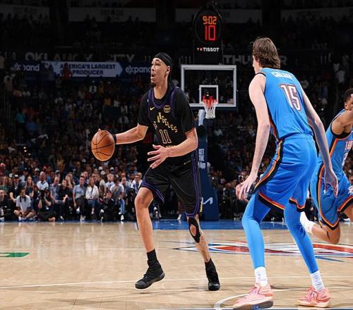 本場比賽中,湖人的替補中鋒賈克森-海斯(Jaxson Hayes)可能算是全隊為數(shù)不多在進攻端表現(xiàn)不錯的球員了,不過他在防守端的表現(xiàn)也是非常一般的。海斯全場出場20分44秒,投籃3中3,罰球8中6,得到了12分1籃板1助攻的數(shù)據(jù),還有1次失誤和3次犯規(guī),正負值為-17。海斯在進攻端有著不錯的籃下得分能力,他的進攻效率相當(dāng)不錯,他也不斷給對手制造犯規(guī),他也是在出手次數(shù)不多的情況下得到了不少分數(shù),他在進攻端也算是打出了不錯的數(shù)據(jù),拿到了不少分數(shù)。不過另一方面,海斯在防守端的表現(xiàn)也是非常糟糕的,他在籃板保護和內(nèi)線防守方面的表現(xiàn)都是令人失望的,并沒有在防守端起到應(yīng)該起到的作用,實在是差了一些。總體來看,海斯的表現(xiàn)還是存在著一定的問題的,不過在這樣一場慘敗中,他的表現(xiàn)也不算是特別糟糕了。