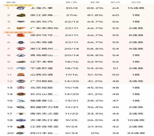 CBA最新積分榜
