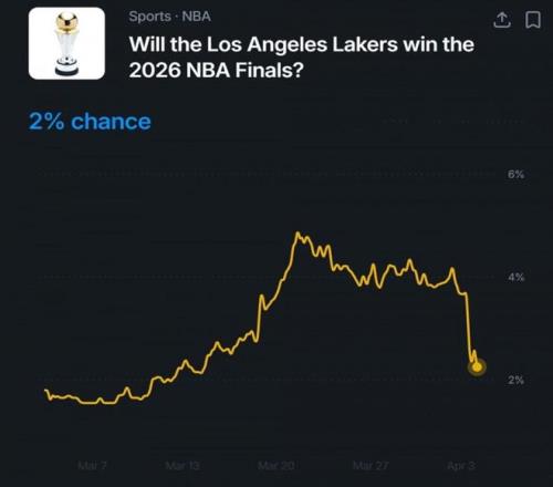 在東契奇確定二級(jí)拉傷后,湖人隊(duì)奪冠概率也迅速暴跌至2%。