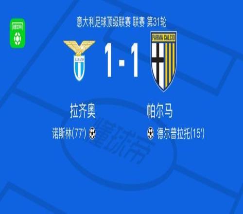 北京時(shí)間4月5日意大利足球頂級(jí)聯(lián)賽 聯(lián)賽 第31輪,拉齊奧主場對(duì)陣帕爾馬。拉齊奧諾斯林破門。帕爾馬德爾普拉托破門。最終比分拉齊奧 1-1 帕爾馬。