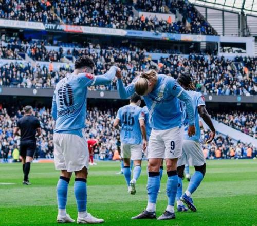 在今天晚上進行的足總杯四分之一決賽曼城主場對陣利物浦的比賽中,哈蘭德在第57分鐘完成帽子戲法,幫助球隊取得4-0領先。