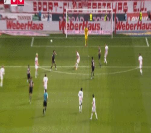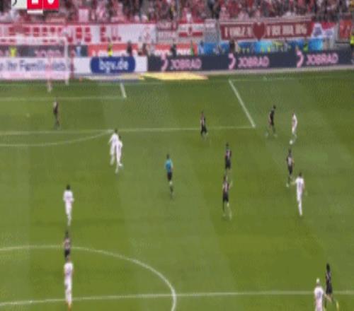 第46分鐘,曼贊比遠(yuǎn)射世界波破門(mén)!拜仁客場(chǎng)0-1落后弗賴(lài)堡!