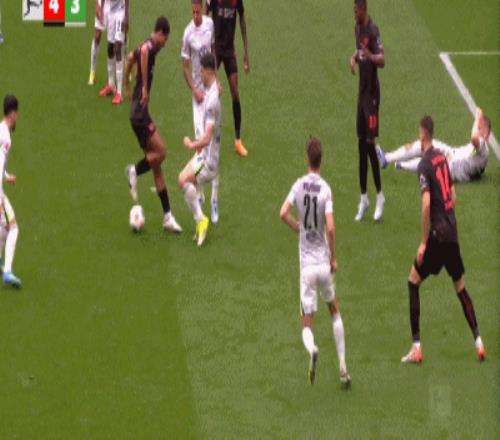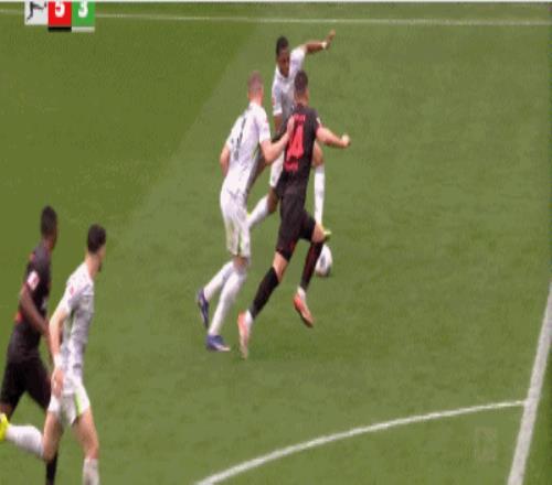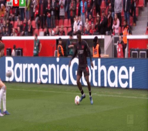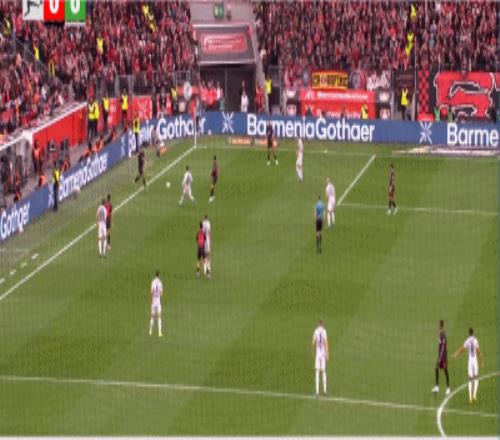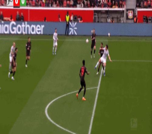 第90+6分鐘,打瘋了,馬里克-蒂爾曼輕松得分,勒沃庫森6-3