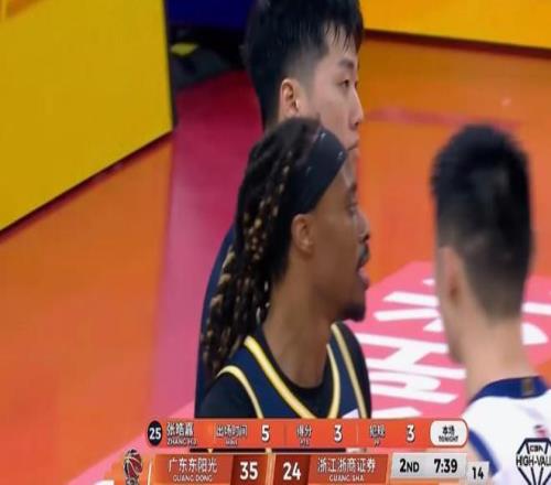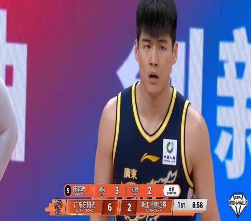 廣東先發(fā)照舊,后場(chǎng)徐杰陳家政薩姆納,前場(chǎng)張皓嘉薩林杰,開(kāi)局陳家政、張皓嘉左右底角連進(jìn)2記三分,塔克靠個(gè)人能力突破造2+1,家政光速吃下2犯,8分15秒薩林杰飚進(jìn)弧頂三分2回合連得5分,廣東打出11-3夢(mèng)幻開(kāi)局。