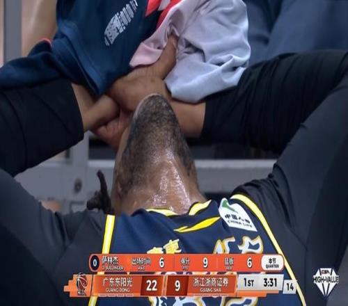 面對(duì)塔克和桑普森的連續(xù)沖擊,張皓嘉也早早身背2犯,杜鋒提前換上崔永熙、杜潤(rùn)旺,小崔3次出手不進(jìn),徐杰飚進(jìn)底角高難度三分,薩林杰也火力全開(kāi)命中高打板拋投一人6分鐘連得9分,帶領(lǐng)廣東領(lǐng)先來(lái)到22-9,但悲催的薩林杰,在連續(xù)多次的籃下對(duì)抗中出現(xiàn)了膝蓋受傷情況被迫下場(chǎng)。