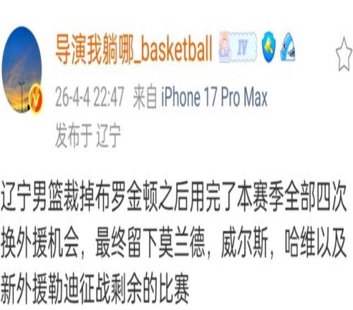 遼寧男籃第二階段使用了三小外援,然而威爾斯、哈維和布羅金頓可以說是半斤八兩,由于補充了大外援杰登勒迪,所以要裁掉一名小外援,根據(jù)直播吧以及媒體人報道,布羅金頓確定會離開遼寧男籃。