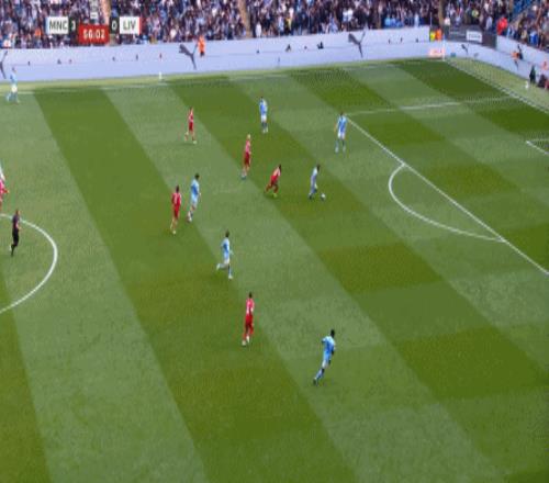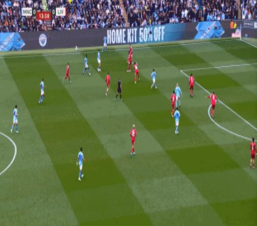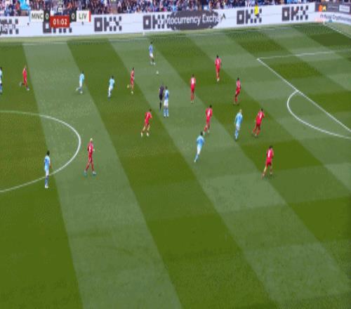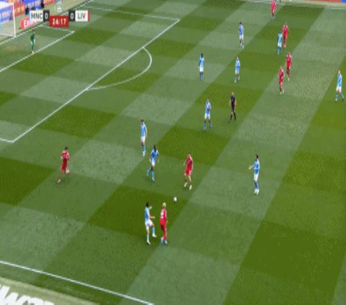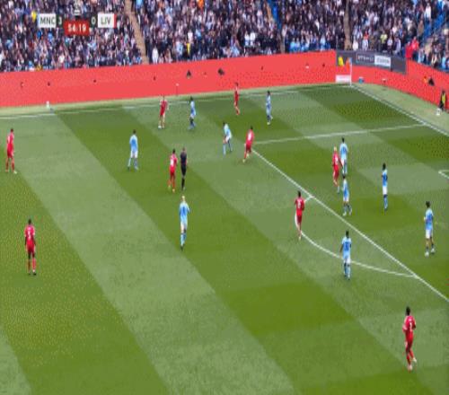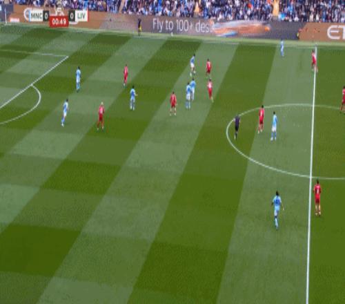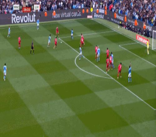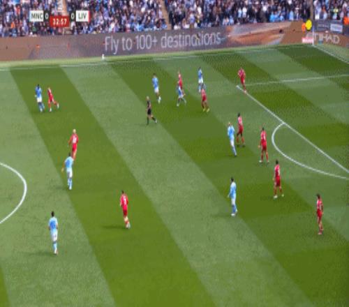 最后到了第29分鐘,曼城已經(jīng)可以打出利物浦想要打的橫移進攻,讓利物浦感受到了真實的壓力: