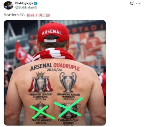 阿森納球迷失望寫(xiě)道:“掉鏈子俱樂(lè)部(bottlers FC)!”:“每個(gè)賽季在最重要的時(shí)刻,阿森納在掉鏈子方面是如此擅長(zhǎng)!”