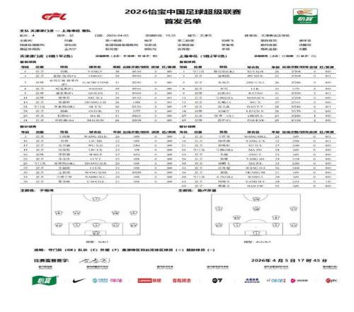 北京時(shí)間4月5日19:35,中超第4輪繼續(xù)進(jìn)行,上海申花做客天津泰達(dá)足球場(chǎng)挑戰(zhàn)天津津門虎,本場(chǎng)主裁判為何鑫,VAR裁判為梁松尚,賽前雙方首發(fā)出爐。