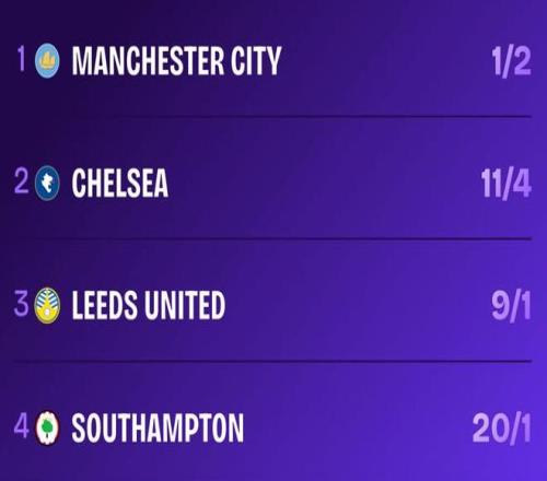 北京時間4月6日,在利茲聯(lián)點球淘汰西漢姆聯(lián)之后,本賽季足總杯的四強也隨之確定,知名數(shù)據(jù)機構(gòu)Squawka列出了四強的奪冠賠率,曼城高居第一,切爾西第二,利茲聯(lián)第三,爆冷淘汰阿森納的南安普頓排名末尾。