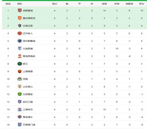 北京時間4月5日,中超聯(lián)賽第四輪結(jié)束爭奪,上海申花3比2逆轉(zhuǎn)擊敗天津津門虎,深圳新鵬城5比2擊敗武漢三鎮(zhèn),重慶銅梁龍1比0擊敗浙江隊。本輪之后,成都蓉城3勝1平領(lǐng)跑,重慶銅梁龍排名第二位,山東泰山隊排名第11。