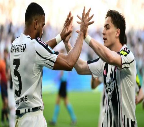 4’耶爾德茲傳中,球到外圍后,赫夫朗·圖拉姆頭球頂回,勞埃德·凱利再次頭球擺渡,布雷默頭球接力攻門(mén),皮球碰到對(duì)手后折線入網(wǎng),尤文1比0。