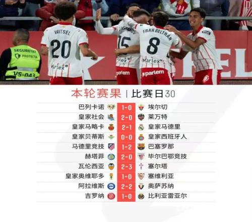 北京時(shí)間4月7日凌晨,西甲第30輪比賽全部結(jié)束。巴塞羅那延續(xù)強(qiáng)勢(shì)表現(xiàn),憑借萊萬絕殺,客場(chǎng)2比1馬競(jìng)帶走3分;而皇家馬德里1比2爆冷不敵馬略卡,與巴薩的分差被拉大至7分;比利亞雷亞爾0比1不敵赫羅納,仍領(lǐng)先馬競(jìng)1分排名第3,由于第五名皇家貝蒂斯距離歐冠區(qū)仍有12分分差,因此兩隊(duì)歐冠席位依舊穩(wěn)固。