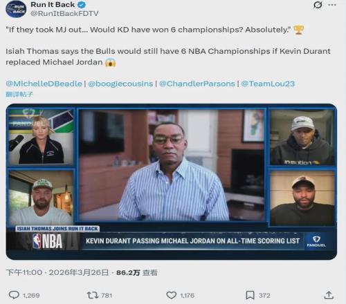 活塞名宿“微笑刺客”伊賽亞-托馬斯說:“如果杜蘭特在我們那個時代打球,他的身邊有皮蓬、羅德曼和菲爾-杰克遜。杜蘭特每晚都能在中距離背身要球,每晚出手25-30次,他也能做到和喬丹一樣的事情,率領(lǐng)公牛拿到6個總冠軍。”