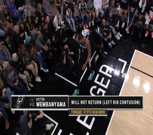 文班亞馬也傷了。在今天馬刺戰(zhàn)勝76人的比賽中,文班亞馬2次返回更衣室,且用手摸著腿,情況不妙。馬刺也給出了診斷結(jié)果,文班亞馬肋部挫傷,下半場(chǎng)不會(huì)回歸。目前,文班亞馬出戰(zhàn)64場(chǎng)(含NBA杯比賽一場(chǎng)),只要在接下來3場(chǎng)出戰(zhàn)超過1場(chǎng),出場(chǎng)時(shí)間超20分鐘即可參加賽季末評(píng)獎(jiǎng)。到底是什么,讓文班亞馬受了傷還歇不了?