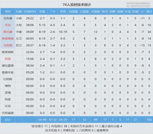 第四節(jié)馬刺提升防守強度,76人單節(jié)僅得到17分。全場戰(zhàn)罷,馬刺主場115-102戰(zhàn)勝76人,馬刺時隔9年再次60勝。恩比德空砍34分12板1助4帽、喬治16分5板4助2斷,后三節(jié)喬治9中1??ㄋ範?9分11板13助、哈珀17分3板4助。