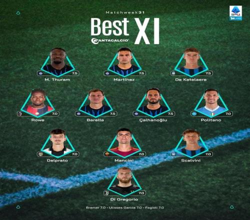 北京時(shí)間4月7日,意甲官方公布聯(lián)賽第31輪最佳陣容,勞塔羅領(lǐng)銜國(guó)米4人,迪格雷戈里奧入選。