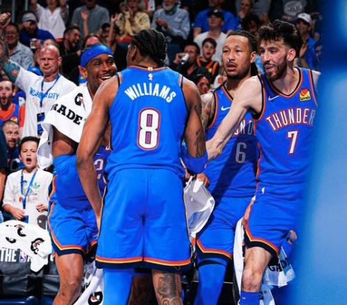 雷霆攻防兩端都有著出色的表現(xiàn),而核心亞歷山大的表現(xiàn)也非常穩(wěn)定,場均拿到31.4分6.5助攻,已經連續(xù)138場轟下20+得分,將向著兩連MVP沖擊。杰倫·威廉姆斯則飽受傷病,目前只打了32場,貢獻17分5.5助攻;好在米切爾、喬和威金斯都成長起來,而霍姆格倫也有17分8.8籃板1.9蓋帽。